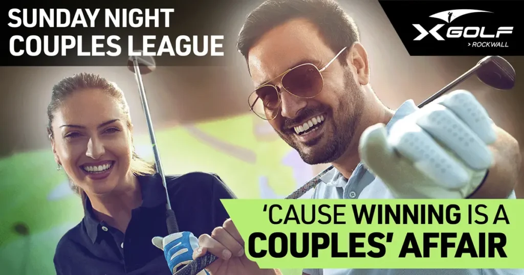 X-Golf Rockwall’s Couples League is 6 weeks of Sunday night 2-person scramble action! It’s all about golf with your favorite person and a chance to meet other couples, plus good food & drinks, great vibes, and some friendly competition. It’s a date night that goes beyond dinner and a movie.